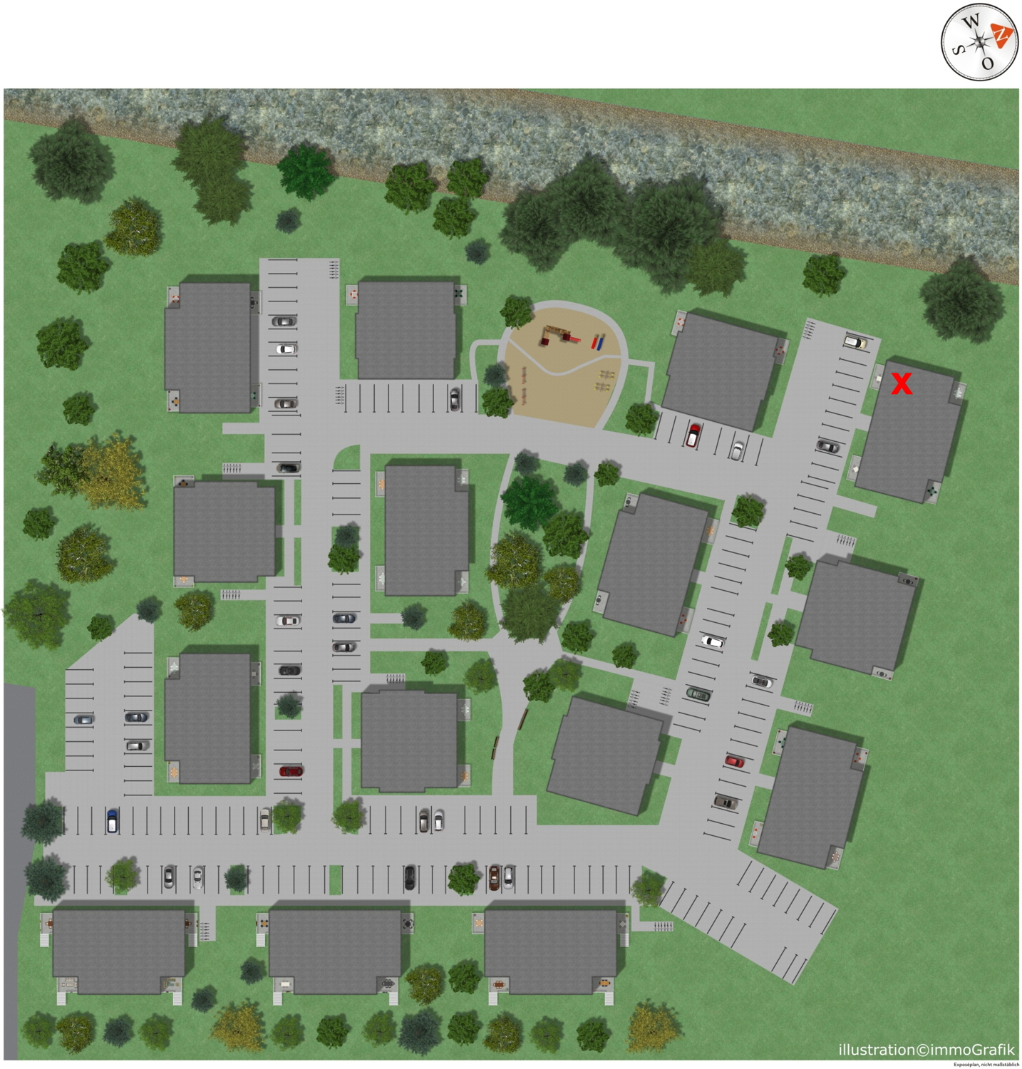 Die Wohnung bietet einen direkten Blick auf den Nottekanal. Bei Bedarf können Sie einen Pkw-Stellplatz direkt vor dem Haus für 50,00 Euro im Monat anmieten. Ein Kinderspielplatz, Grünflächen und Fahrradstellplätze sind Bestandteil der teilweise noch im Bau befindlichen Wohnanlage.